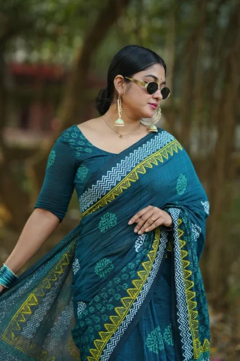 1,450.00৳Original price was: 1,450.00৳ .1,199.00৳ Current price is: 1,199.00৳ .শাড়িতে আকর্ষণীয় ব্লকের কাজ করা